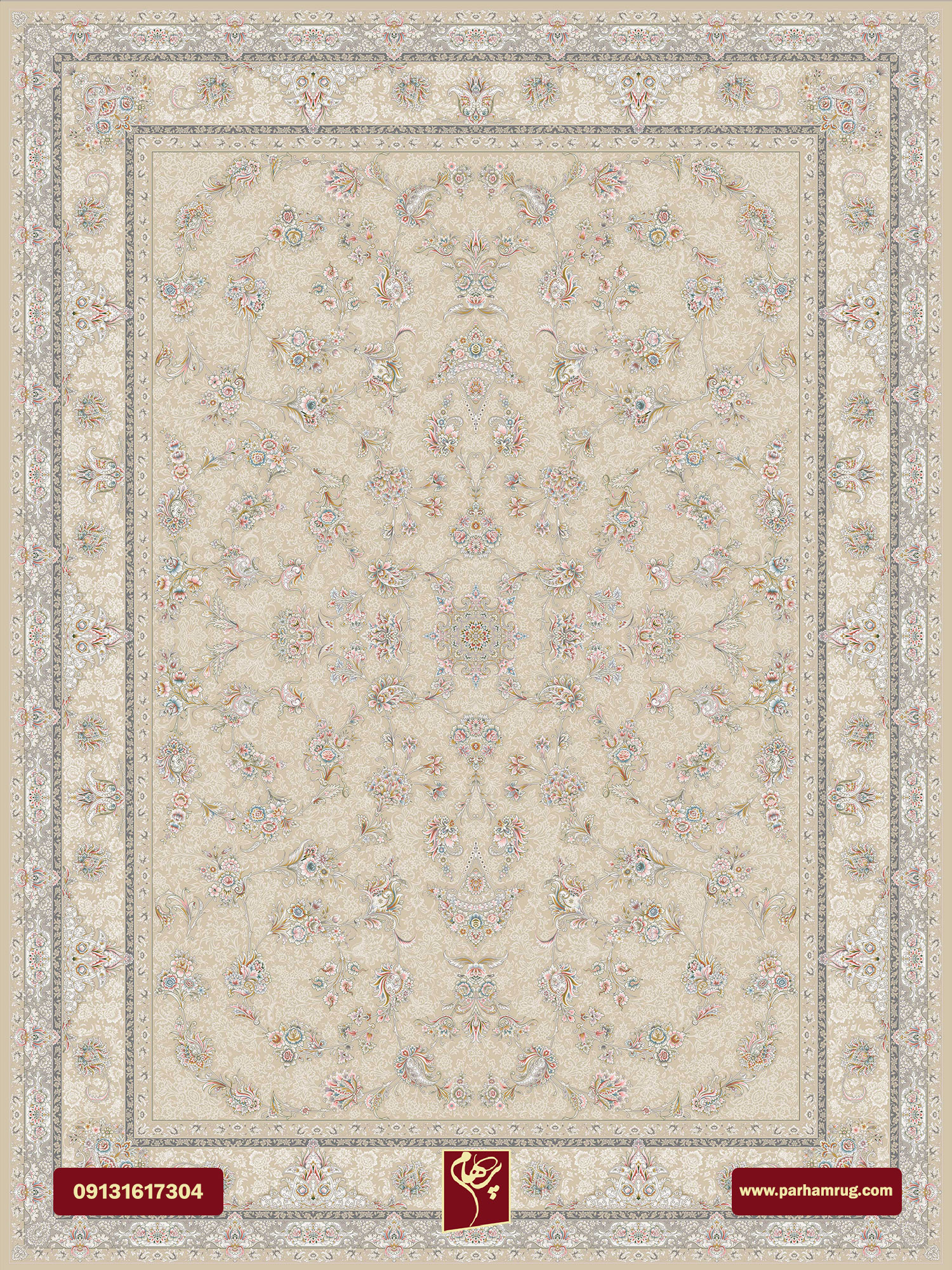 قیمت فرش قاجار بژ 1200 شانه تراکم 3600